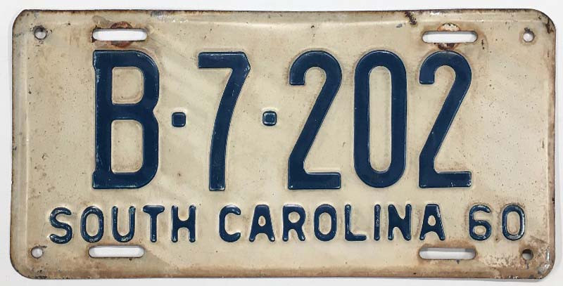 Click the button below to add the South Carolina 1960 License Plate - B7202 to your wish list.