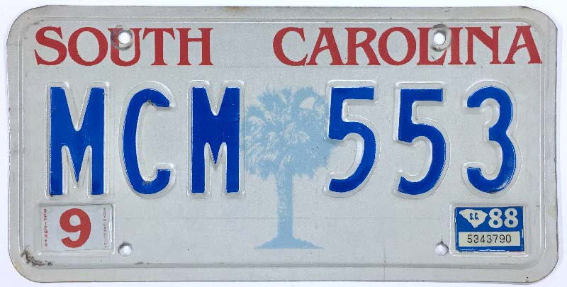 Click the button below to add the South Carolina 1988 "Palmetto Tree" License Plate - MCM553 to your wish list.