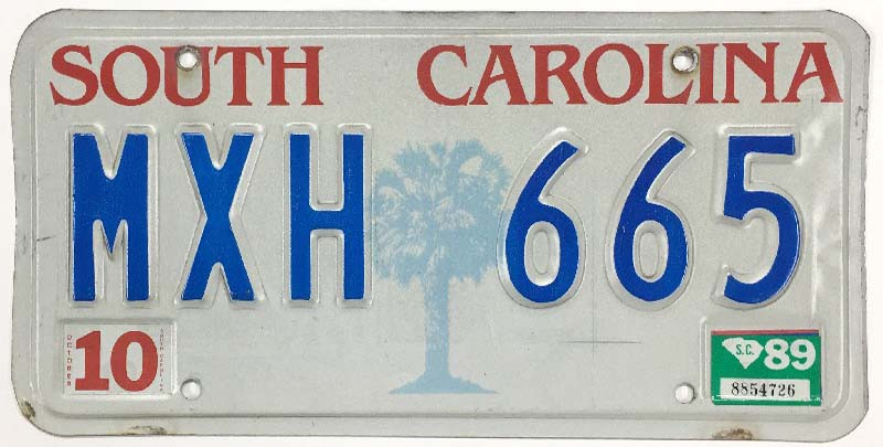 Click the button below to add the South Carolina 1989 "Palmetto Tree" License Plate - MXH665 to your wish list.