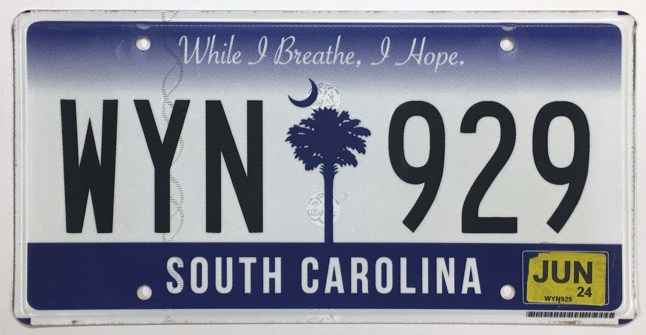 Click the button below to add the South Carolina 2024 "While I Breathe" License Plate - WYN929 to your wish list.