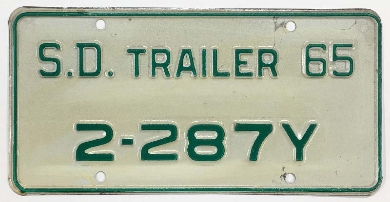 Click the button below to add the South Dakota 1965 Pennington County Trailer License Plate - 2287Y to your wish list.