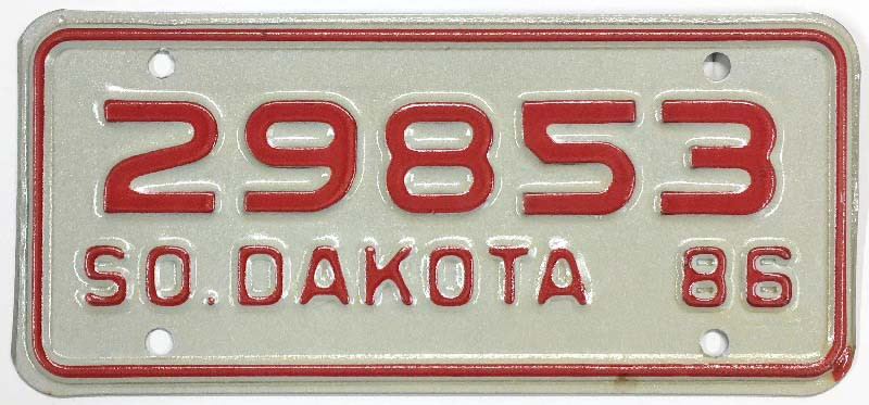 Click the button below to add the South Dakota 1986 Motorcycle License Plate - 29853 to your wish list.