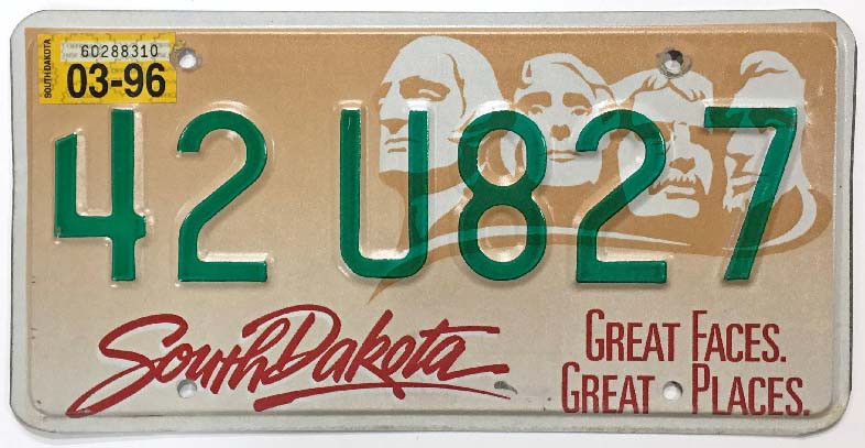 Click the button below to add the South Dakota 1996 "Great Face Great Places" Kingsbury County License Plate - 42U827 to your wish list.