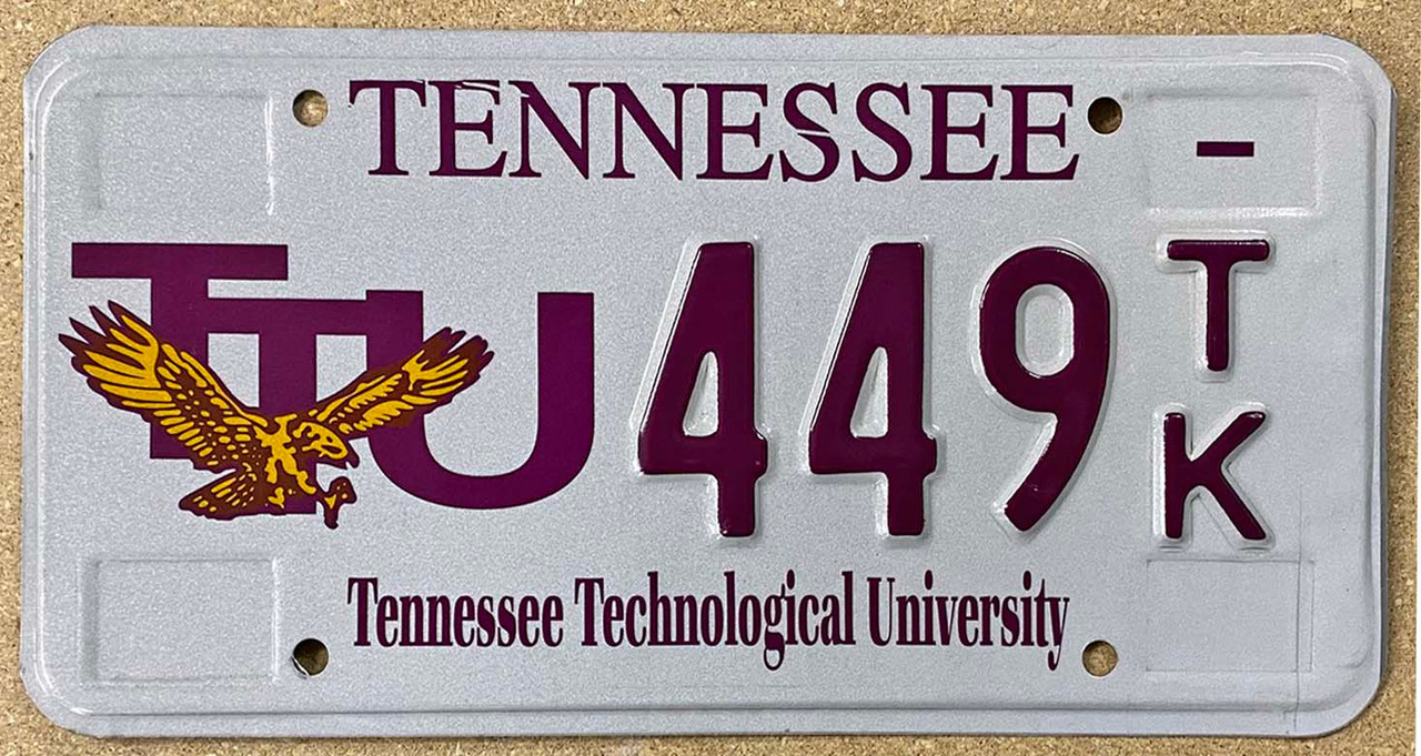 Click the button below to add the Tennessee 2001 Tennessee Tech University License Plate - 449TK to your wish list.