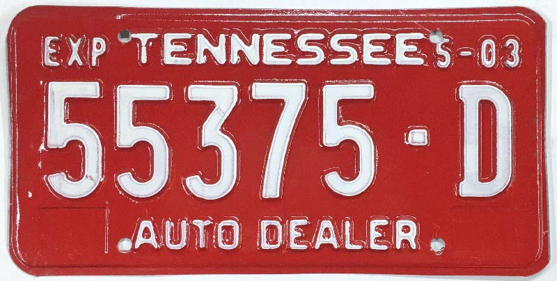 Click the button below to add the Tennessee 2003 Used Car Dealer Embossed License Plate - 55375D to your wish list.