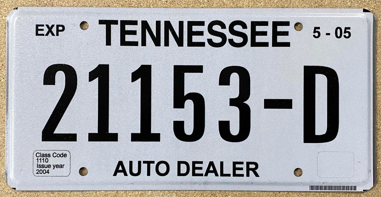 Click the button below to add the Tennessee 2005 New Car Dealer License Plate - 21153D to your wish list.