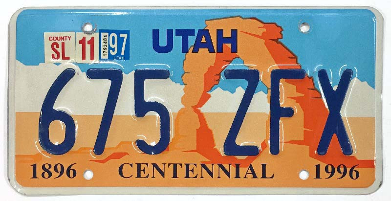 Click the button below to add the Utah 1997 "Arches National Park" Centennial License Plate - 675ZFX to your wish list.