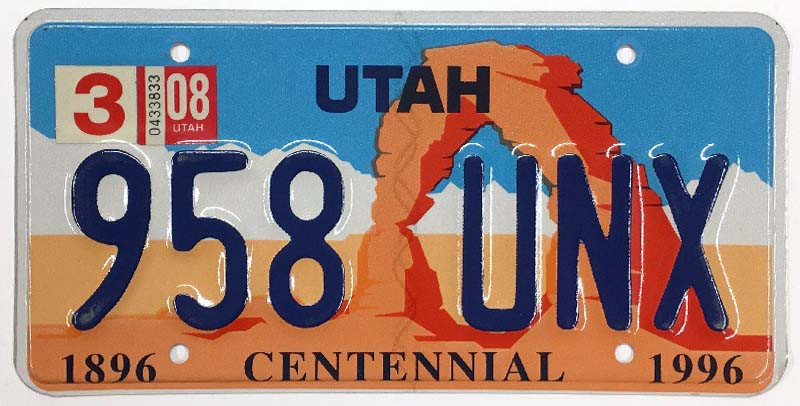 Click the button below to add the Utah 2008 "Arches National Park" Centennial License Plate - 958UNX to your wish list.