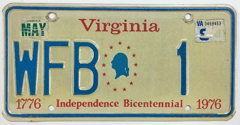 Click the button below to add the Virginia 1976 1980 Bicentennial Personalized License Plate - WFB1 to your wish list.
