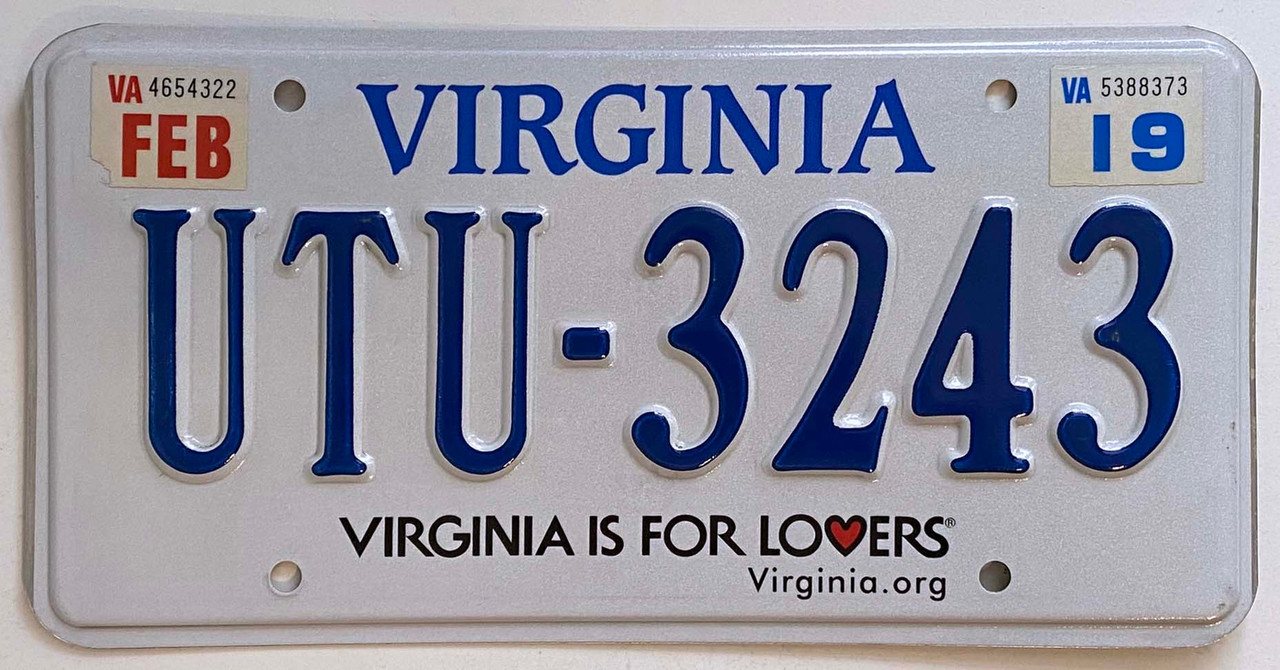 Click the button below to add the Virginia 2019 "Lovers" License Plate - UTU3243 to your wish list.