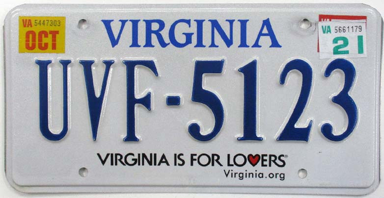 Click the button below to add the Virginia 2021 "Lovers" License Plate - UVF5123 to your wish list.