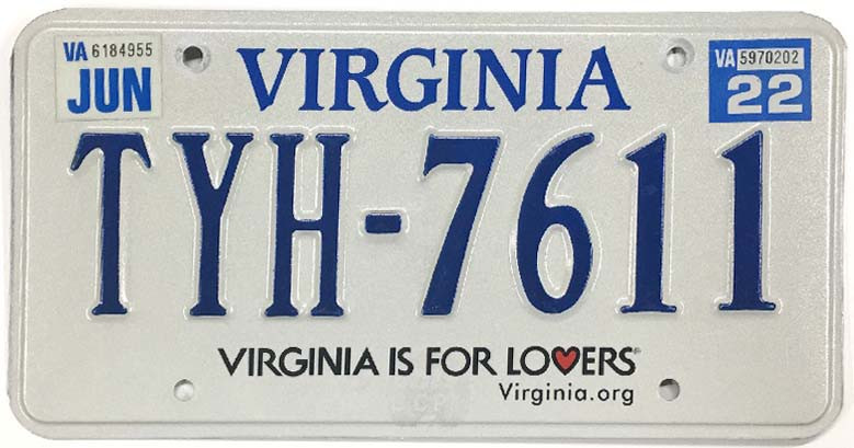 Click the button below to add the Virginia 2022 "Lovers" License Plate - TYH7611 to your wish list.