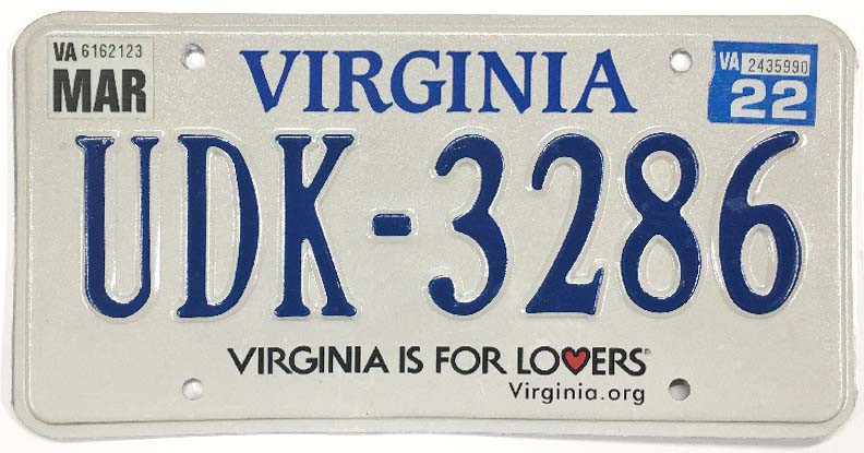 Click the button below to add the Virginia 2022 "Lovers" License Plate - UDK3286 to your wish list.