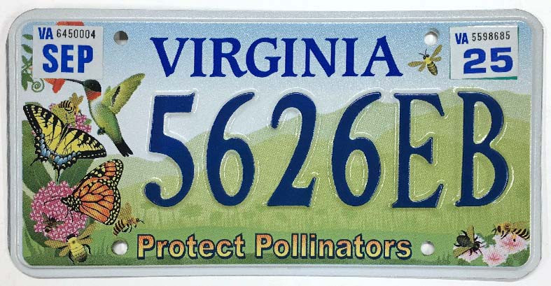Click the button below to add the Virginia 2025 Protect Pollinators License Plate - 5626EB to your wish list.