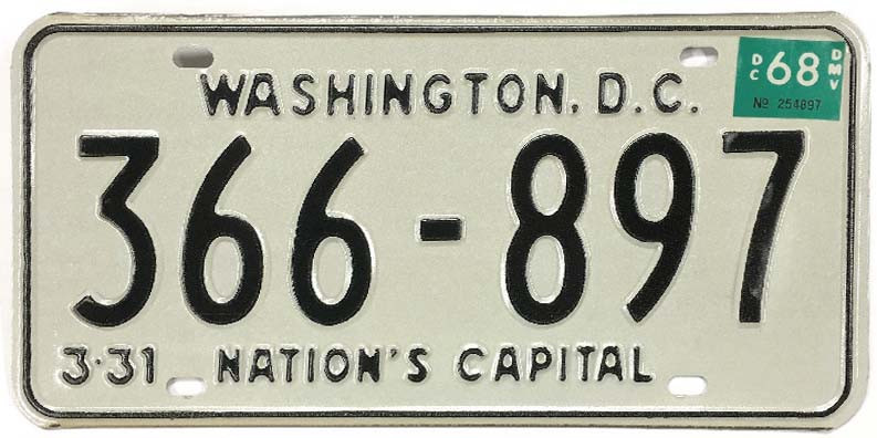 Click the button below to add the Washington DC 1968 "Nation's Capital" License Plate - 366897 to your wish list.
