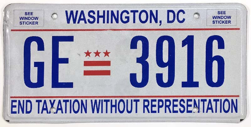 Click the button below to add the Washington DC 2021 "End Taxation" License Plate - GE3916 to your wish list.
