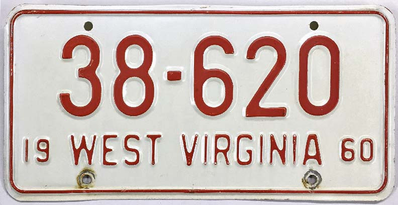 Click the button below to add the West Virginia 1960 License Plate - 38620 to your wish list.