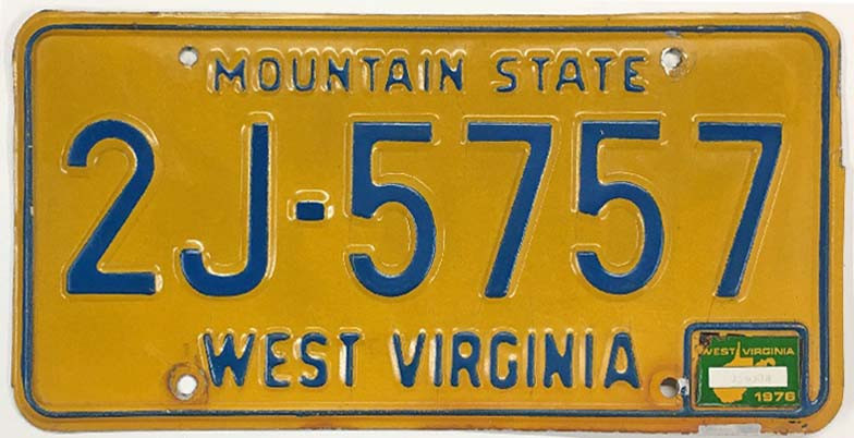Click the button below to add the West Virginia 1976 "Mountain State" License Plate - 2J5757 to your wish list.