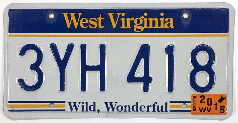 Click the button below to add the West Virginia 2018 "Wild Wonderful" License Plate - 3YH418 to your wish list.