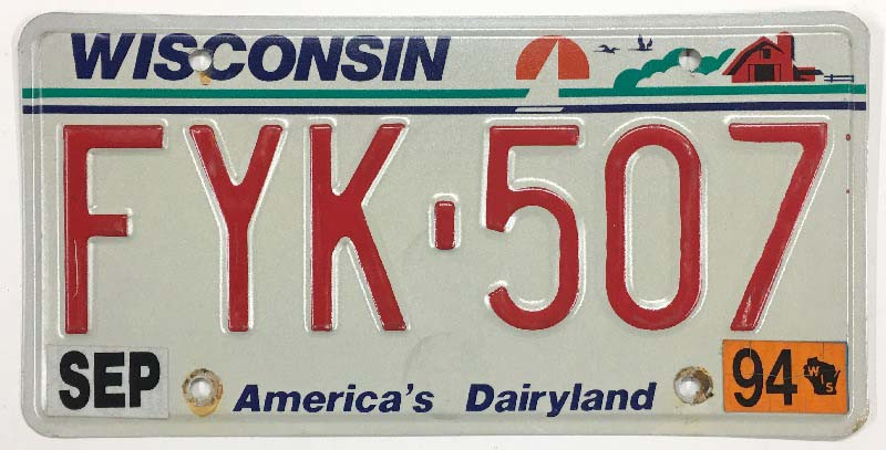 Click the button below to add the Wisconsin 1994 "America's Dairyland" License Plate - FYK507 to your wish list.